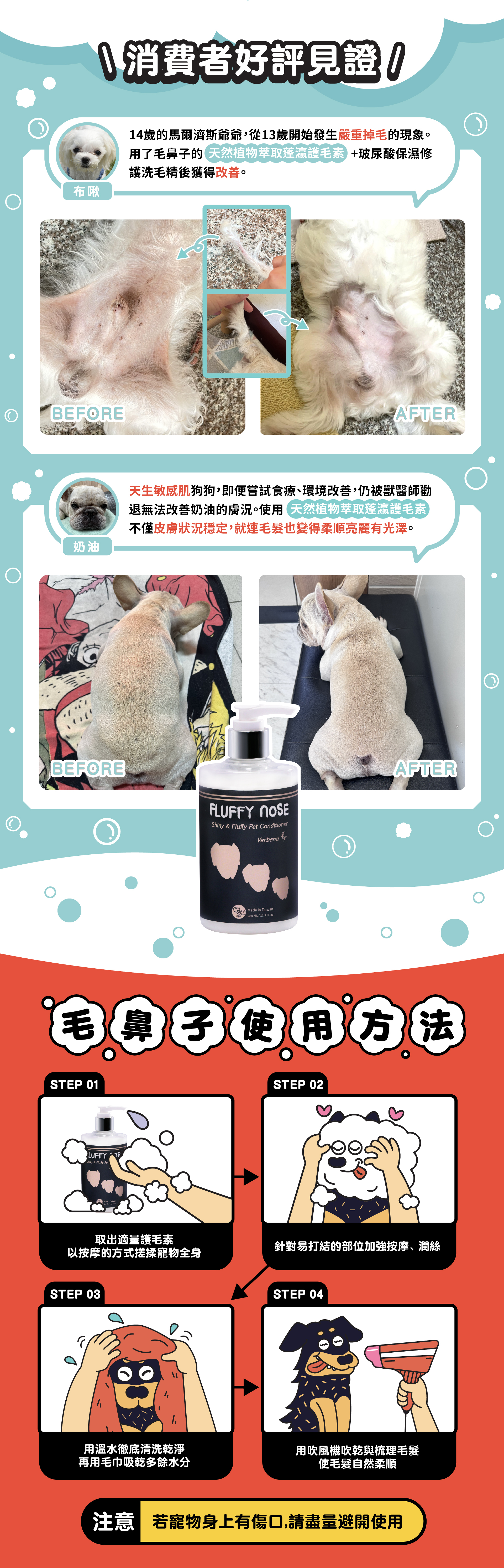 ✦ 天然友善護毛用品,深入毛髮內部加強修護!