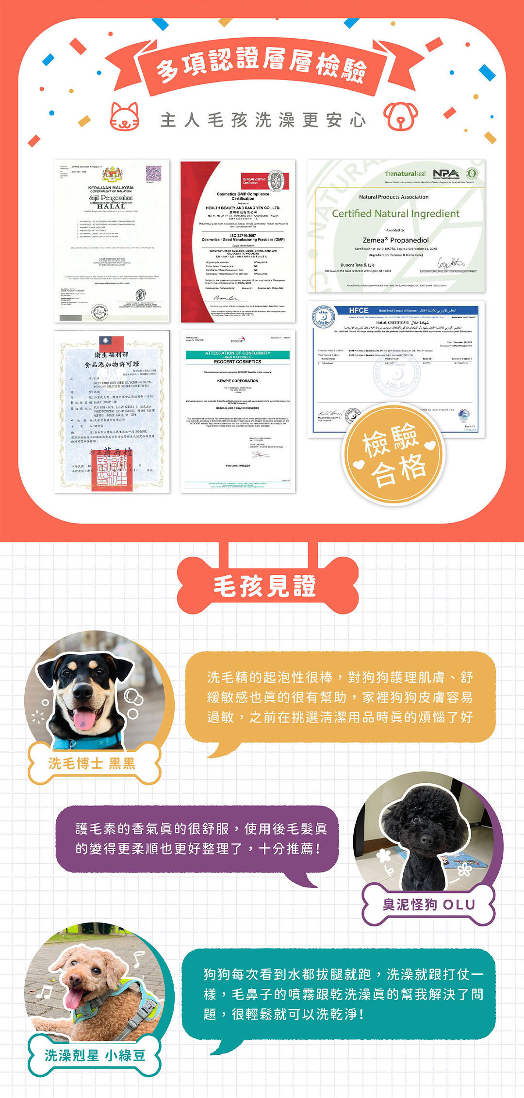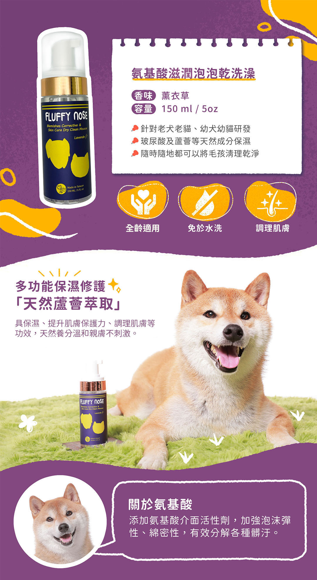 首款添加氨基酸的泡泡乾洗澡,幼犬幼貓、老貓老狗等過敏肌皆能安心使用,在清潔的同時一併保養!